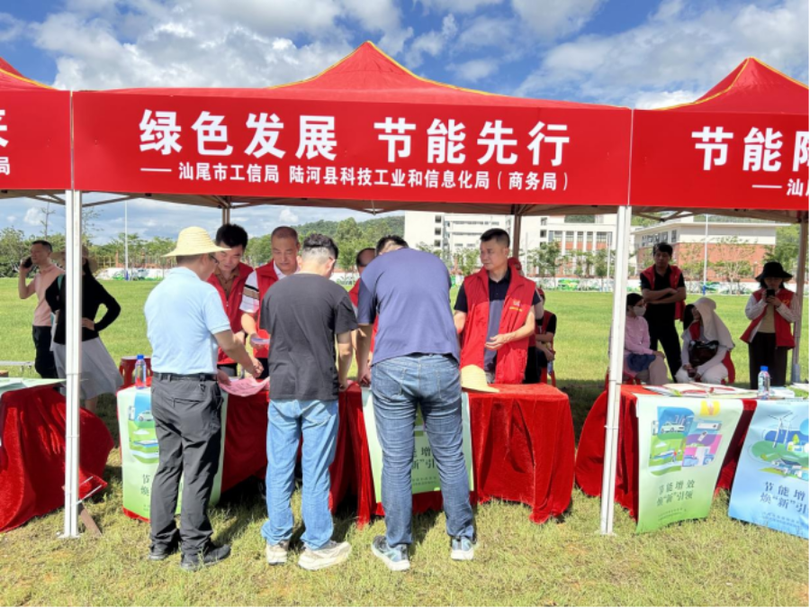 6月23日下午,县科工局联合市工信局、市商务局在陆河县青年公园开展以“绿色发展 节能降碳”及“发展绿色经济 商务护航队在行动”为主题的“全国节能宣传周和低碳日”主题宣传活动。活动现场通过悬挂横幅、摆放展板、发放宣传手册等群众喜闻乐见的形式,集中宣传绿色低碳理念,倡导全社会践行节能降碳的生产方式和生活方式。
