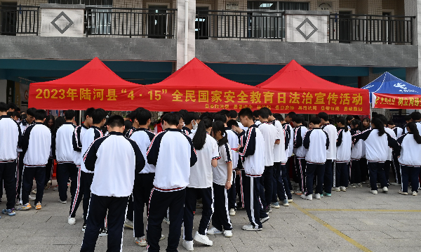 为认真贯彻落实总体国家安全观,推进青少年法治宣传教育,2023年4月14日上午,县委政法委、县法院、县公安局、县司法局、县信访局、县政数局等单位联合走进县职业技术学校,开展“4·15”全民国家安全教育日法治宣传活动。