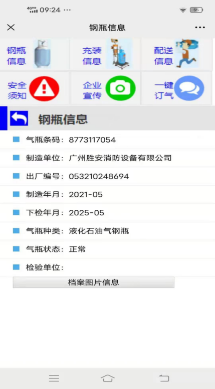 另外,从2021年6月起,汕尾市的液化石油气钢瓶已开始建立电子标签(二维码识别芯片),可以通过手机直接扫描电子标签可以读取气瓶信息,包含气瓶档案、检验、充装和流转等信息,如图所示。为了气瓶的安全使用,这些信息需要用户特别重视。