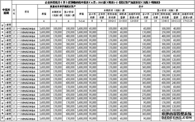 表一:预缴申报表附表1-2《固定资产加速折旧(扣除)明细表》