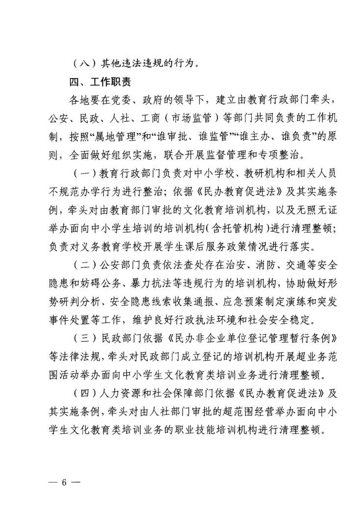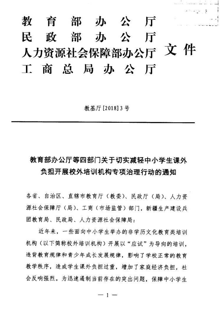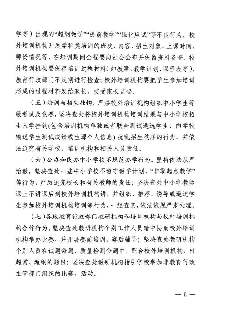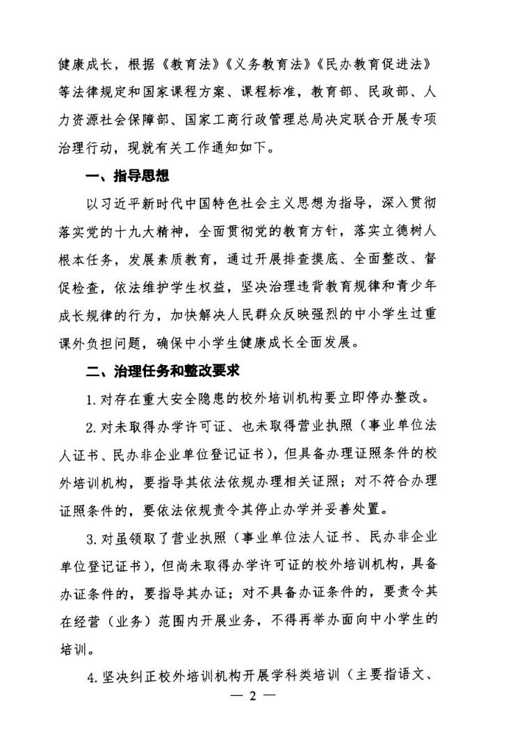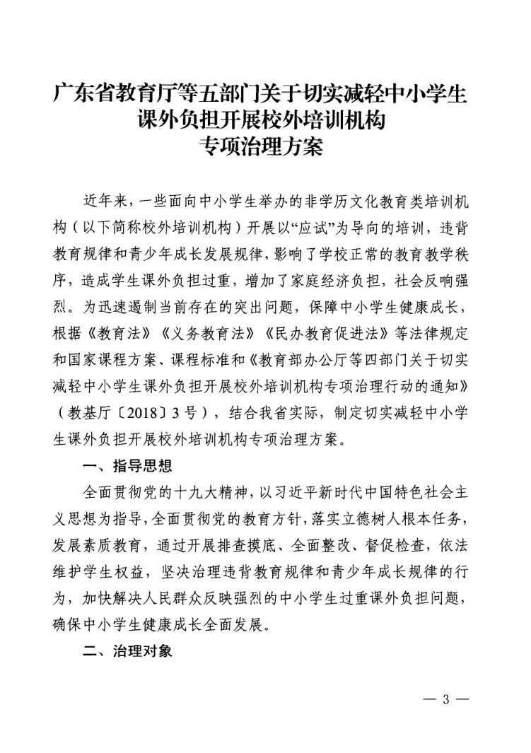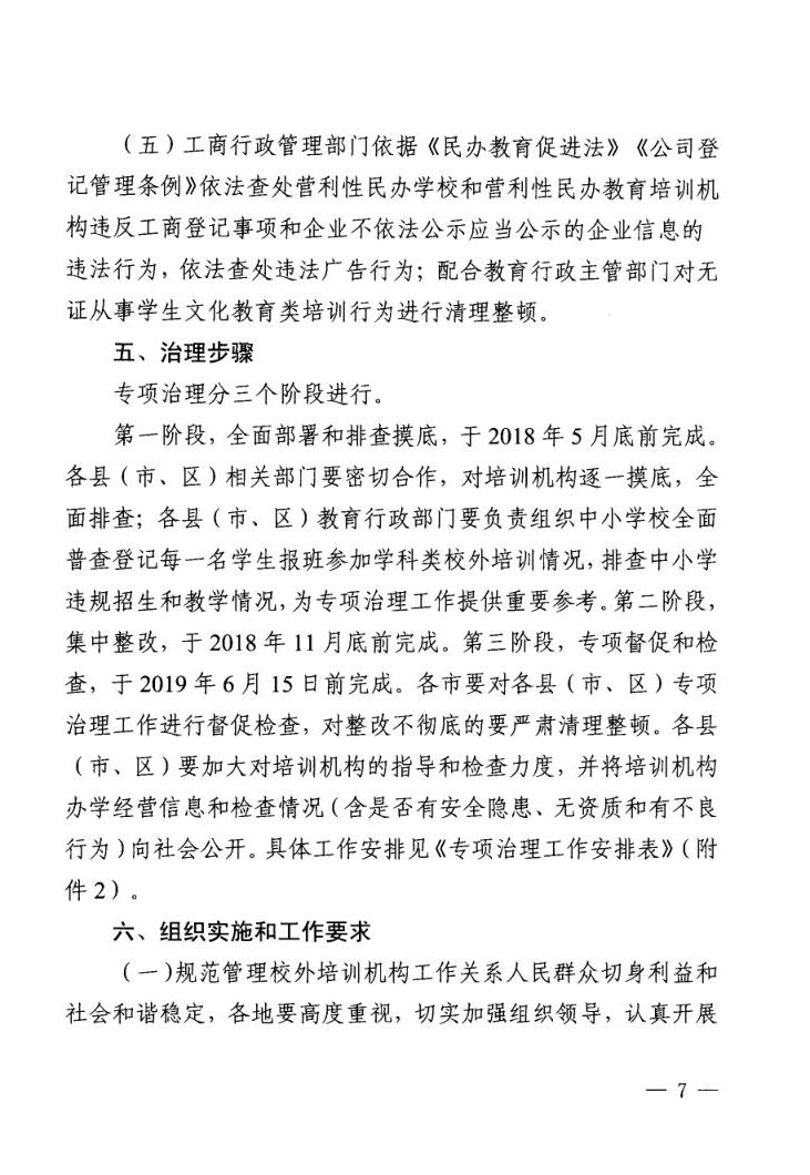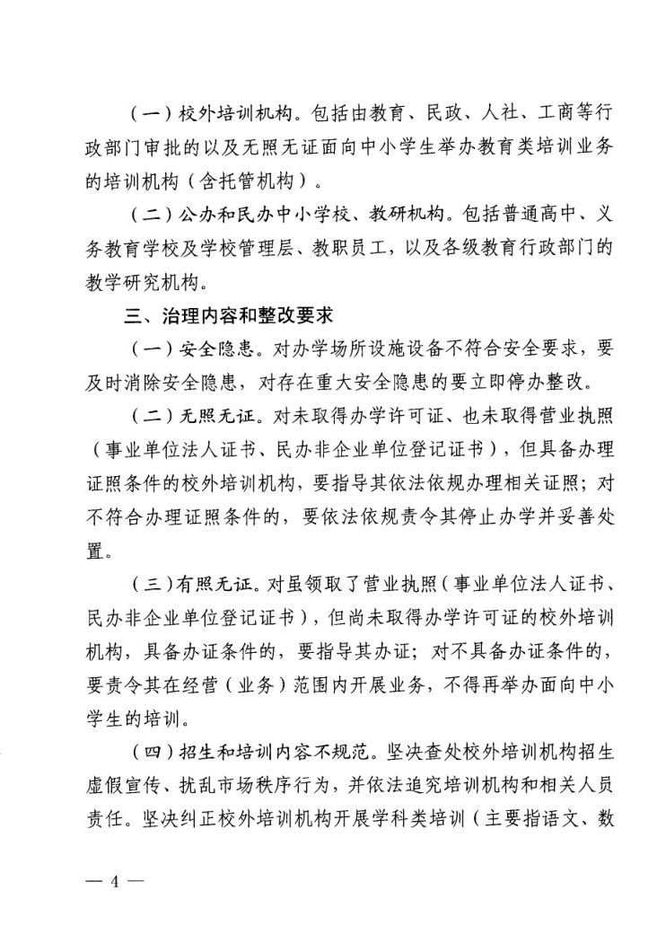 关于印发切实减轻中小学生课外负担开展校外培训机构专项治理方案的通知