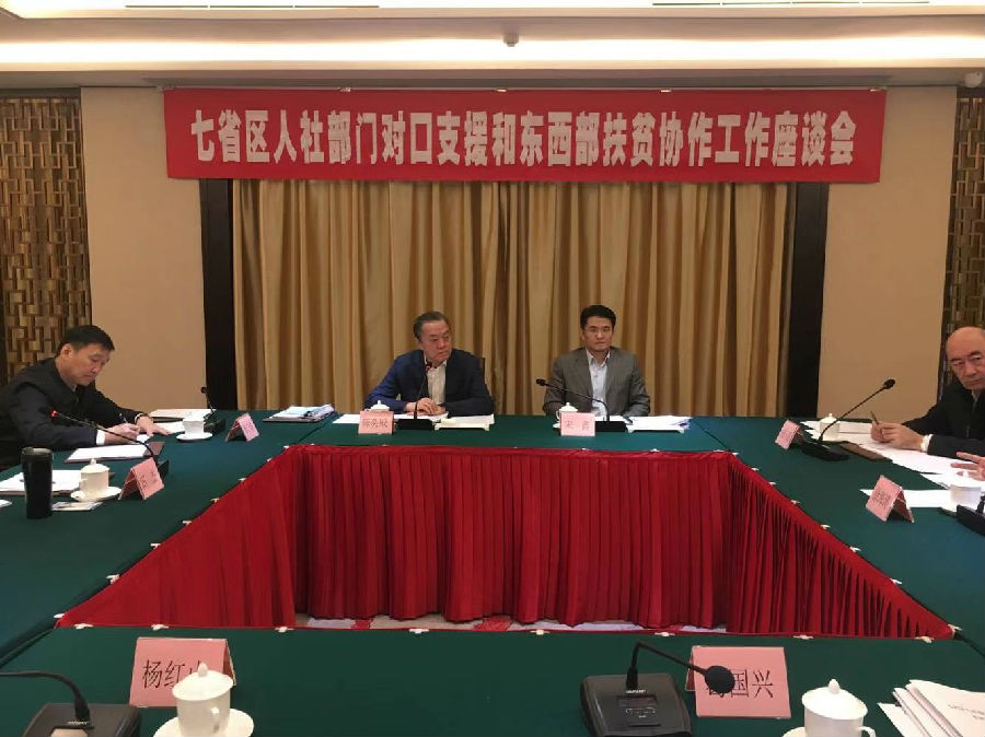 为深入学习贯彻习近平总书记关于对口支援和东西部扶贫协作的重要指示精神,落实人社部和省委、省政府关于就业对口支援和东西部劳务扶贫协作的部署要求,3月8日上午,广东省人力资源社会保障厅邀请广西、四川、贵州、云南、西藏、新疆等七省区人社部门,在广州市召开人社部门对口支援和东西部扶贫协作工作座谈会,推动将“粤菜师傅”工程导入省际扶贫协作,进一步提高劳务组织化程度和服务精准化水平,推进脱贫攻坚工作取得新成效、新进展。