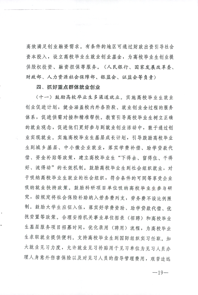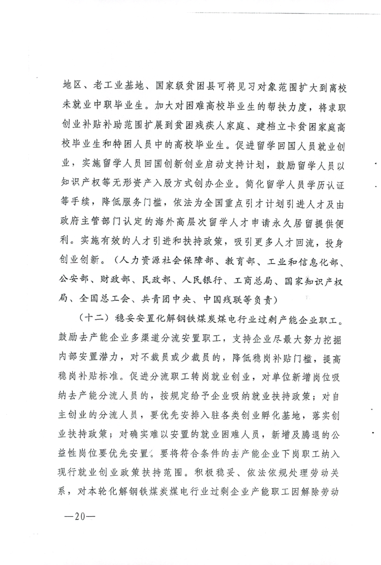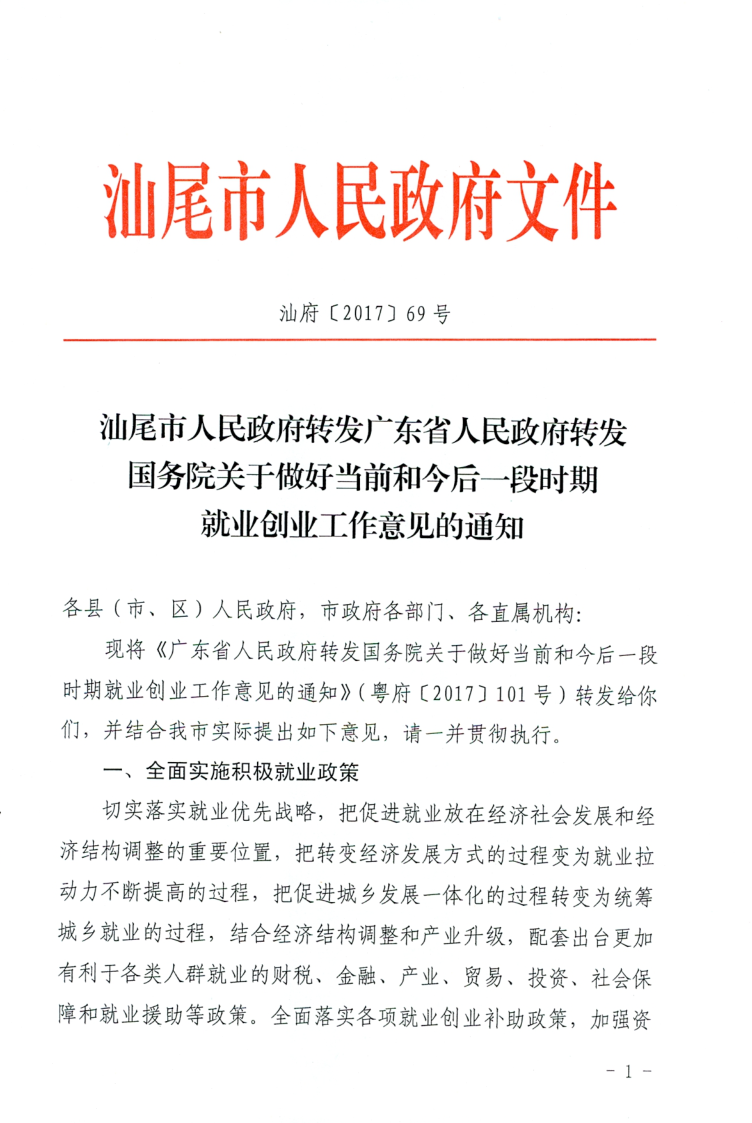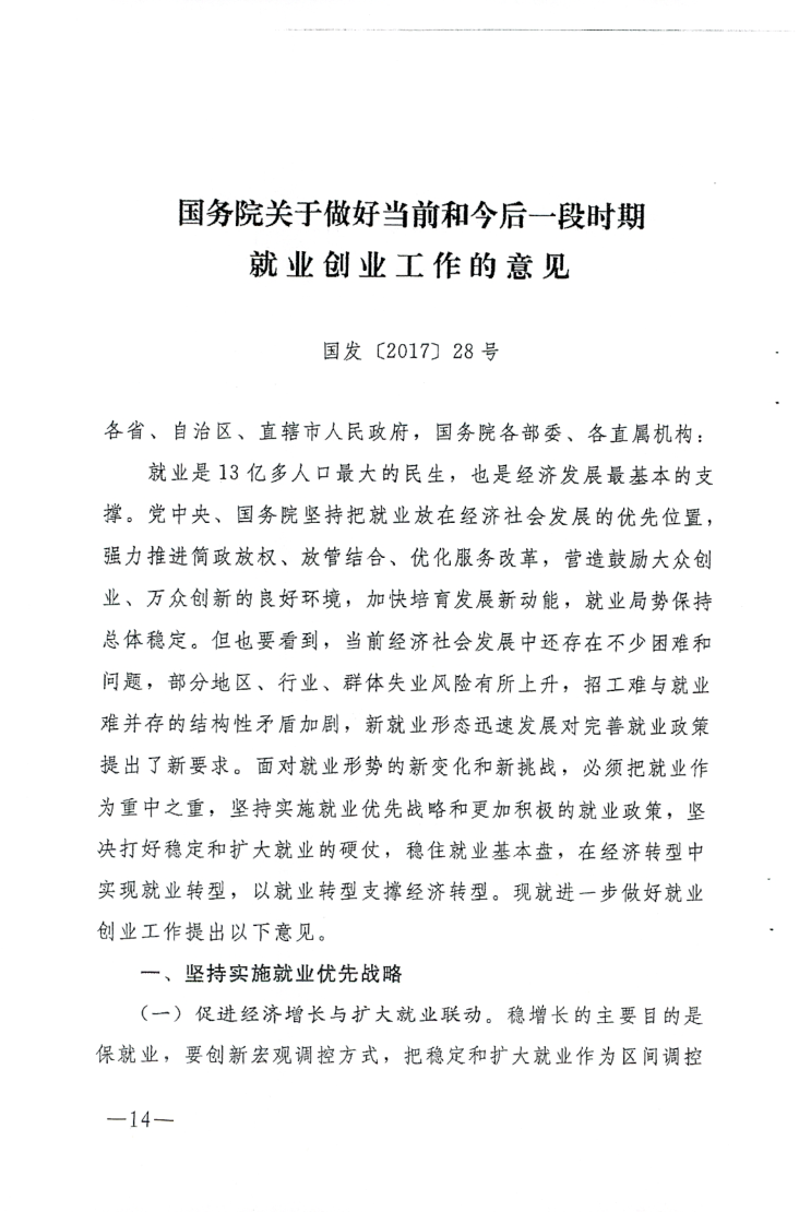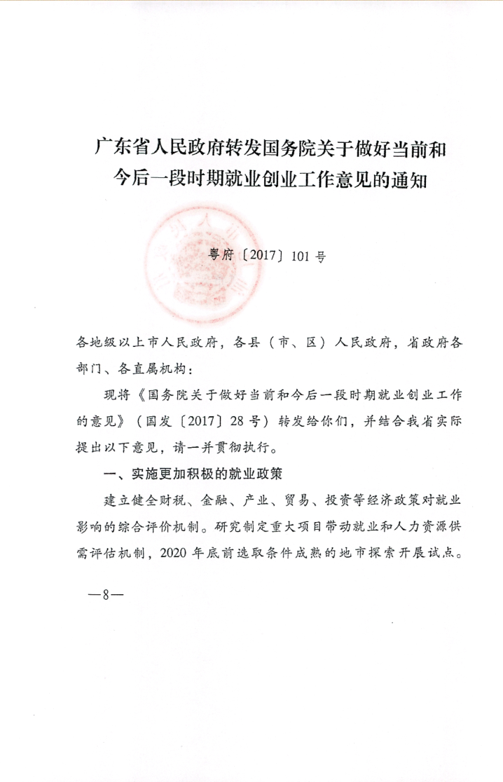 关于做好当前和今后一段时期就业创业工作意见的通知