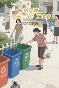 5.家家户户倒垃圾。倡导市民群众定期打扫卫生,清理家具底部、墙角缝隙、厨房水槽下方、卫生间角落等卫生死角;及时整理室内外杂物(如纸箱、塑料袋等),修剪盆栽枝叶,并清除小型绿化区域的落叶杂草,减少蚊虫藏匿空间。
