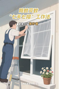 3.家家户户装纱窗。倡导市民群众在家里全面安装、修补纱窗、纱门,确保完好有效,有效隔断蚊虫入侵。