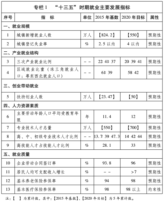 广东省贯彻落实国家《“十三五”促进就业