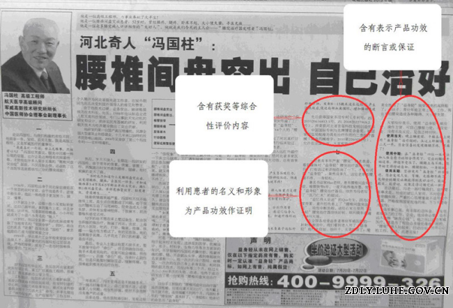 我局在广告监测中发现,医疗器械 “便携式腰椎支撑牵引理疗康复器”在我省媒体发布的广告含有以下涉嫌严重违法情形:1、利用患者的名义和形象为产品功效作证明; 2、含有表示产品功效的断言或保证;3、含有获奖等综合性评价内容。涉嫌违法内容详见标注处,该内容严重欺骗和误导消费者,已被依法移送相关部门处理。