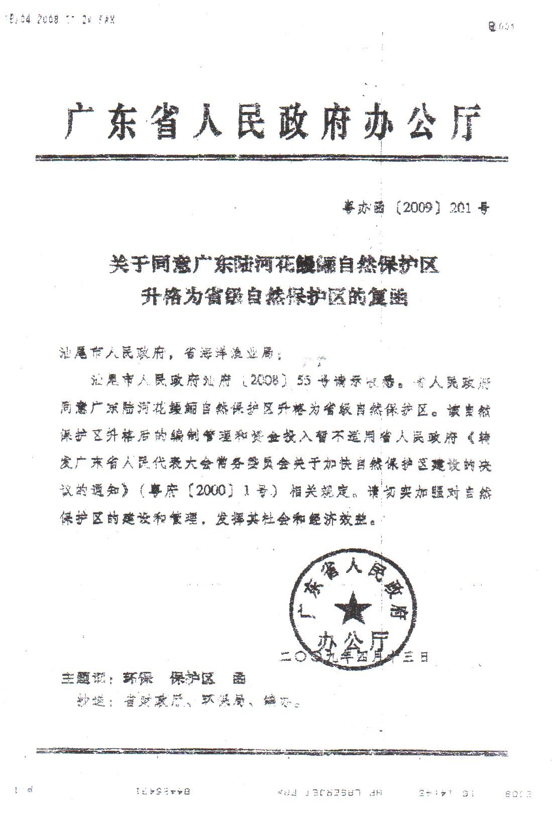 陆河县位于广东省东南部的汕尾市北面山区,坐落在莲花山脉南麓,位于东经115°24’至115°49’,北纬23°28’至23°68’之间。广东陆河花鳗鲡省级自然保护区地理坐标为东经115°27′- 115°45′、北纬 23°8′-23°26′之间。保护区河段全长125.68公里,总面积1865.6公顷,其中核心区660公顷、缓冲区617.6公顷、实验区588公顷,主要保护对象是花鳗鲡及其栖息生态环境。该保护区2004年12月经陆河县人民政府批准设立县级自然保护区,文号:陆河府[2004]104号;2006年6月经汕尾市人民政府批准升格为市级自然保护区,文号:汕府办函[2006]153号; 2009年4月经广东省政府批准同意升格为省级自然保护区,文号:粤办函[2009]201号。该保护区在升市级保护区前扩大了保护区的面积和范围,面积从原来的120公顷扩大至1865公顷,保护区的范围从河口南北溪扩大至新田河和螺河干流及支流,文号:陆河府函[2006]23号。
