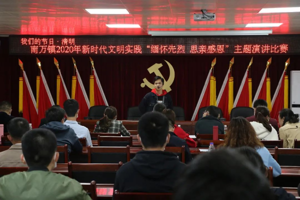 为更好弘扬中华传统文化,陶冶干部职工和群众的艺术情操和丰富业余生活,营造积极向上的文化氛围,2020年3月29日晚上7时,南万镇组织以“缅怀先烈 思亲感恩”为主题的新时代文明实践主题演讲比赛。