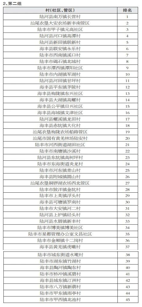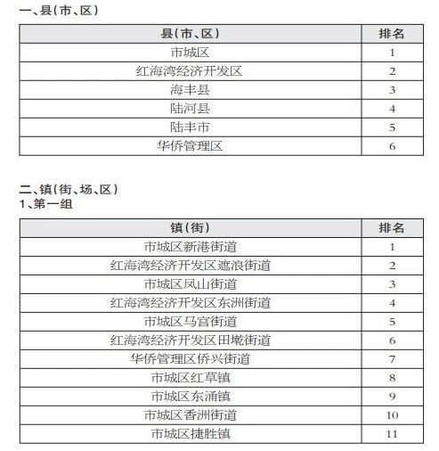 为扎实推进全市各地文明创建工作深入开展,营造“干净、方便、安全、和谐、美丽、高尚”的城乡环境,形成市、县、镇、村四级文明创建比学赶超的生动局面,加快老区振兴,推动经济社会发展跃上新台阶,推动高质量发展取得新优势新成效,市创文办根据《汕尾市2023年度文明创建“一月一主题”测评排名实施方案》(汕创文〔2023〕1号)要求,委托第三方对市城区等6个县(市、区),市城区新港街道、陆丰市金厢镇等56个镇(街、场),市城区新港街道海滨社区、陆河县南万镇长营村等78个村(社区、管区)开展“交通秩序整治”专项工作进行了测评排名。现将测评结果通报如下。