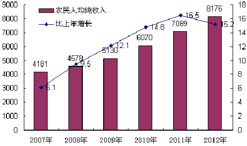 2007-2012年农民人均纯收入及其增长速度