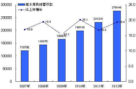 2007-2012年城乡居民储蓄存款及其增长速度