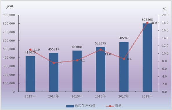 2013-2018年地区生产总值及其增长速度