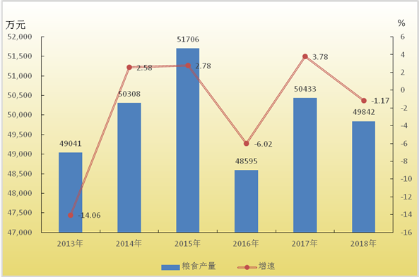 2013-2018年粮食产量及其增长速度
