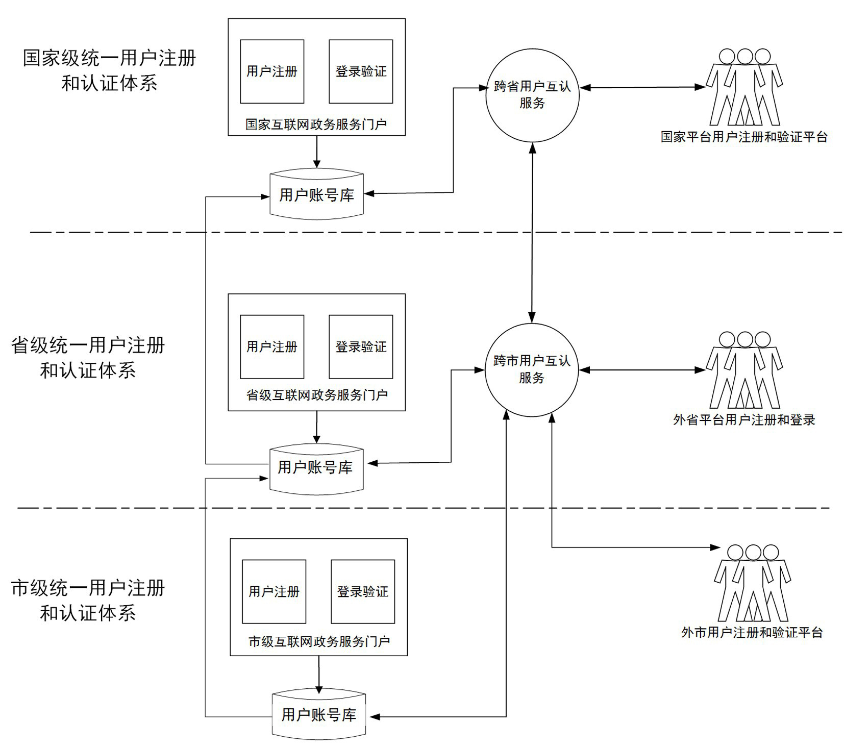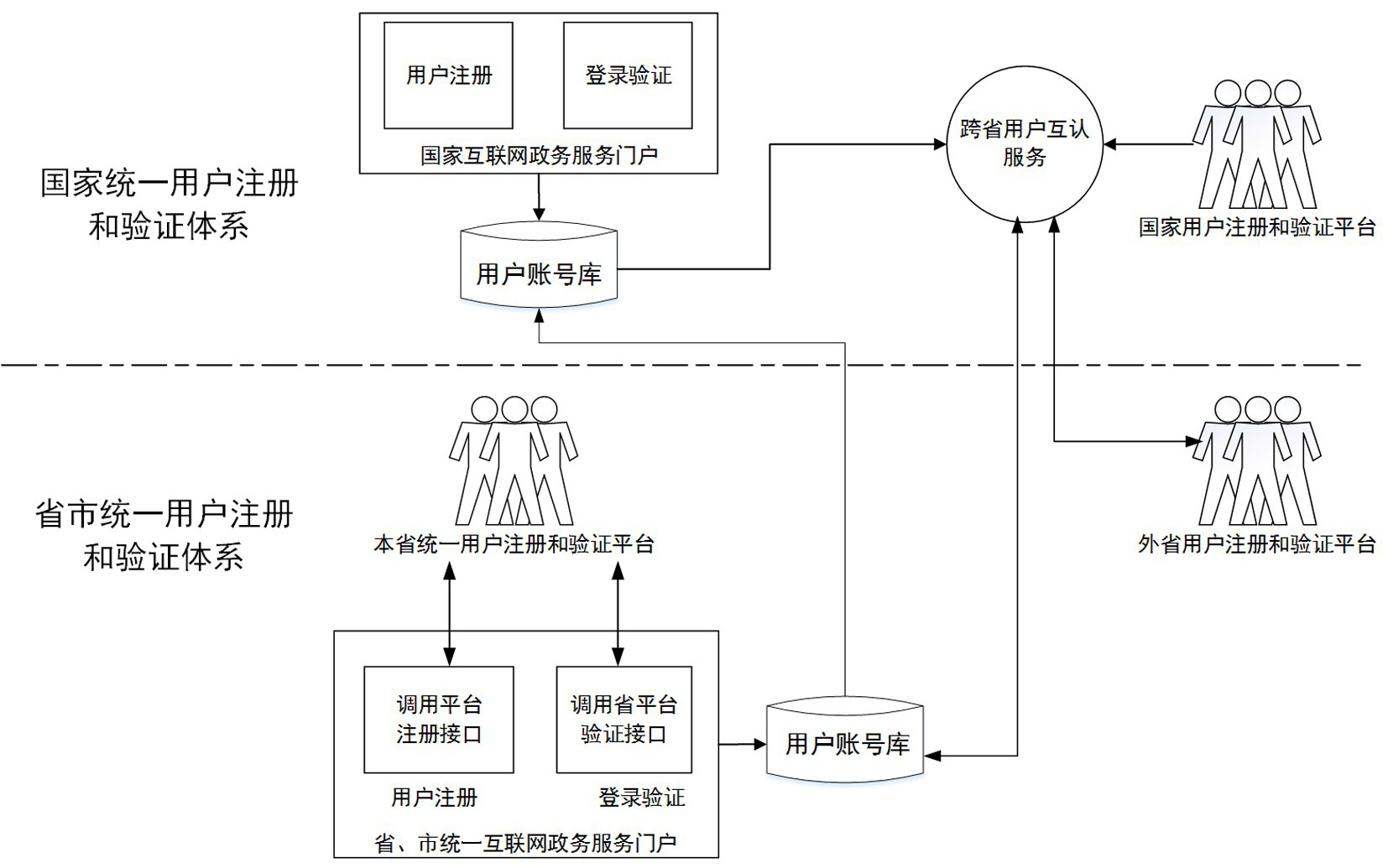 1.基础设施层 基础设施包括网络、服务器、安全等硬件基础设施,优先依托政务云平台进行集约化部署建设。网络方面,天天看高清影视在线官网的预审、受理、审批、决定等原则上依托统一电子政务网络,天天看高清影视在线官网的咨询、预约、申报、反馈等依托互联网。天天看高清影视在线官网数据共享平台依托电子政务网络建设。 2.数据资源层 数据资源层基于天天看高清影视在线官网资源目录和数据交换,汇聚天天看高清影视在线官网事项库、办件信息库、监管信息共享库、信用信息库等天天看高清影视在线官网业务信息库,共享利用人口、法人、地理空间信息、电子证照等基础信息资源库,实现数据资源共建共享,共同构成天天看高清影视在线官网数据共享平台,为天天看高清影视在线官网提供统一的数据支撑。 3.应用支撑层 应用支撑包括CA和电子印章、工作流引擎、电子表单、消息服务等各种通用组件服务,也包括用户管理及认证、支付平台和物流平台等中间支撑系统。 4.业务应用层 业务应用包括天天看高清影视在线官网管理平台和各级部门审批业务办理系统,实现天天看高清影视在线官网事项管理、运行管理、电子监察、电子证照管理等功能。 5.用户及服务层 互联网天天看高清影视在线官网门户包括用户注册、事项发布、事项申请、办理互动、办件查询、服务评价等,自然人和法人可通过PC电脑、移动终端、实体大厅、自助服务终端、呼叫热线等多种渠道访问。 (四)用户注册和认证体系 为保证网上天天看高清影视在线官网用户信息的真实、合法和有效,自然人和法人用户注册、认证应采用实名制。统一用户注册和认证体系是开展“互联网+天天看高清影视在线官网”、建立天天看高清影视在线官网实施机构和行政相对人线上服务法律关系的前提,是全国天天看高清影视在线官网网上“一地注册,各地互认”的基础。 针对平台建设的不同特点,注册和认证可采用三种方式。 1.分建方式 用户可通过国家、省、地市级互联网天天看高清影视在线官网门户注册和验证,注册用户账号信息存储在各级天天看高清影视在线官网数据共享平台,通过交叉验证实现共享互认。用户跨省、跨市登录验证时,通过国家、省级用户互认服务,调用获取外省(区、市)、地市(州)用户信息。详细用户注册和验证流程如图3—8所示: 图3-8 分建方式用户注册和认证示意图