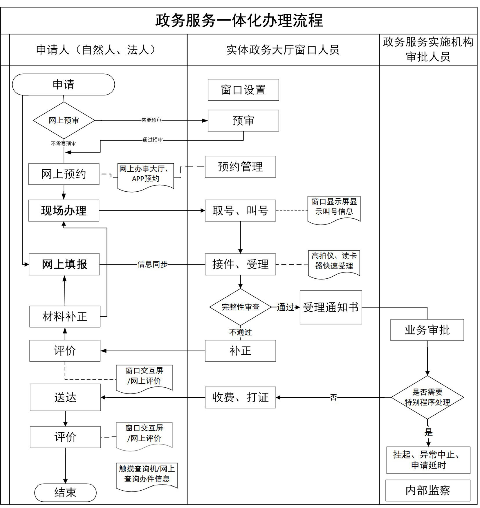①网上预审 网上预审是对注册用户通过互联网天天看高清影视在线官网门户、移动APP等提交的申请进行初步审核,基本满足申请条件及材料的,即可进行预受理,预受理后,可让申请者进一步提供相关材料或者信息。 ②预约管理 预约管理是对注册用户通过互联网天天看高清影视在线官网门户、移动APP等提交的预约办理信息的管理功能,应具备预约事项属性配置、预约时间段设置等。 ③窗口受理 窗口受理是实体政务大厅窗口人员受理本人权限范围内的服务事项,涵盖咨询、接件、受理、查询等业务环节,主要包括预审、叫号、接件、受理、补齐补正等功能。 【预审】预审是对注册用户网上提交办件申请信息进行审核确认、反馈的管理功能。若办件中缺少必要材料,应提醒用户补充材料;若材料齐全通过预审,可通过在线消息、手机短信、移动终端等方式通知用户到现场办理。 【叫号】申请人根据取号票到窗口排队办理,通过与大厅窗口显示屏对接,动态显示窗口排队情况,窗口人员在业务办理时,进行叫号操作,按照办件编号进行申办人业务受理。叫号需要与大厅排队取号机、窗口显示屏进行关联。 【接件】申请人办理时,刷卡进行身份确认,窗口人员快速获取申请人基本信息并完善填写其他信息,证照材料自动关联电子证照库证照信息,其他材料通过高拍仪快速上传到系统,完成接件操作。 【受理】接件完成后,进入受理操作,窗口人员受理通过,打印带二维码的受理通知书,受理通知书应提供办件编号、受理时间、受理部门、窗口人员、承诺时限、受理材料以及送达方式等信息,告知申请人。受理不通过,打印不予受理通知书,不予受理通知书应提供办件编号、受理时间、受理部门、窗口人员、不予受理原因等信息,告知申请人。 系统应支持一窗受理模式,列出所有受理材料的审查要点并醒目提示,降低综合窗口人员的受理难度。 【补齐补正】对于需要材料补齐补正的情况,应打印补齐补正通知书,补齐补正通知书应提供办件编号、受理时间、受理部门、窗口人员、承诺时限、需补齐补正材料等信息。申请人补齐补正材料后再来办理时,可直接调出补齐补正办件继续办理。 ④内部审批 对于有独立业务办理系统的天天看高清影视在线官网实施机构,通过数据交换,向业务办理系统推送申请表、附件材料、受理信息,并从业务办理系统获取过程信息、审批结果、电子证照。对于没有独立业务办理系统的实施机构,可直接在天天看高清影视在线官网运行管理系统中完成事项内部审批环节,内部审批包括业务审批、特别处置、内部监察等功能。 【业务审批】实现部门内部办理,包括审查、决定、送达等通用审批环节,应支持部门自定义审批流程。 【特别处置】特别处置主要包括事项挂起、异常中止、申请延时等。在听证、实地核查等特殊情况时作暂停处理,并告知申请人,事项挂起后,事项办理时效将停止计时。由于事项特殊原因需要延时的办件,应申请延时,延时申请审核通过后,该事项监察点时限也将自动延时。对于办件过程中中止的,需要发起中止程序,提交中止原因。 【内部监察】对部门内部事项审批办理进行跟踪、监控。具有监察权限的天天看高清影视在线官网实施机构人员可以对审批的过程进行监控,应能提供预警提醒功能。 ⑤收费制证 系统根据事项收费依据和标准自动计算出收费金额,窗口人员进行核价,打印缴费通知单,申请人持缴费通知单到指定银行窗口缴费,银行工作人员进行收讫确认,打印发票,缴费完成后,申请人返回实体政务大厅,由窗口人员确认收费。有条件的地区可以实现统一在线缴费。需要打印的事项,具备在线套打功能。申请者在互联网天天看高清影视在线官网门户上可以自行打印相关通知单。 ⑥送达 通过手机短信、移动终端等将办理结果告知申请人、请其到大厅取件,窗口人员登记送达信息,也可以通过物流的方式将办理结果送至申请人。 ⑦查询与评价 事项办理过程中,可在互联网天天看高清影视在线官网门户上随时查看办件进度,让申请者能随时查看到整个过程。 事项办理结束后,申请人可通过手机短信、移动终端、互联网天天看高清影视在线官网门户、天天看高清影视在线官网大厅评价器(或窗口交互平台)等渠道进行办件评价,评价信息应关联到窗口,作为绩效评估的依据。 ⑧归档管理 审批事项办结后,将审批形成的电子证照、决定及回执,申请人上传的各类电子文书及提报的审批项目基本信息,实施行政审批受理(或者不予受理)、审查、办理等过程形成的电子表单,行政审批关键业务行为的受理人、受理时间、办理情况等过程描述元数据,按照档案管理有关要求在线或离线进行电子归档。 ⑨智能化集成 高拍仪/扫描仪:可将扫描材料压缩转换并自动上传到天天看高清影视在线官网运行管理系统中,实现办件材料的电子化。应支持A3/A4大小材料上传,具备图片矫正、编辑等电子材料优化功能。 身份证读卡器:可实现刷卡办件申请、获取办件数据、刷卡办件取证等功能,需支持读取二代身份证照片信息功能。 排队叫号系统:可支持刷卡快速打印号票,显示办理事项、排队人数等信息,支持窗口软件叫号集成功能,具备取号机缺纸自动预警功能。 智能触摸终端:可提供大厅简介、组织架构、服务指南、办理流程、法律