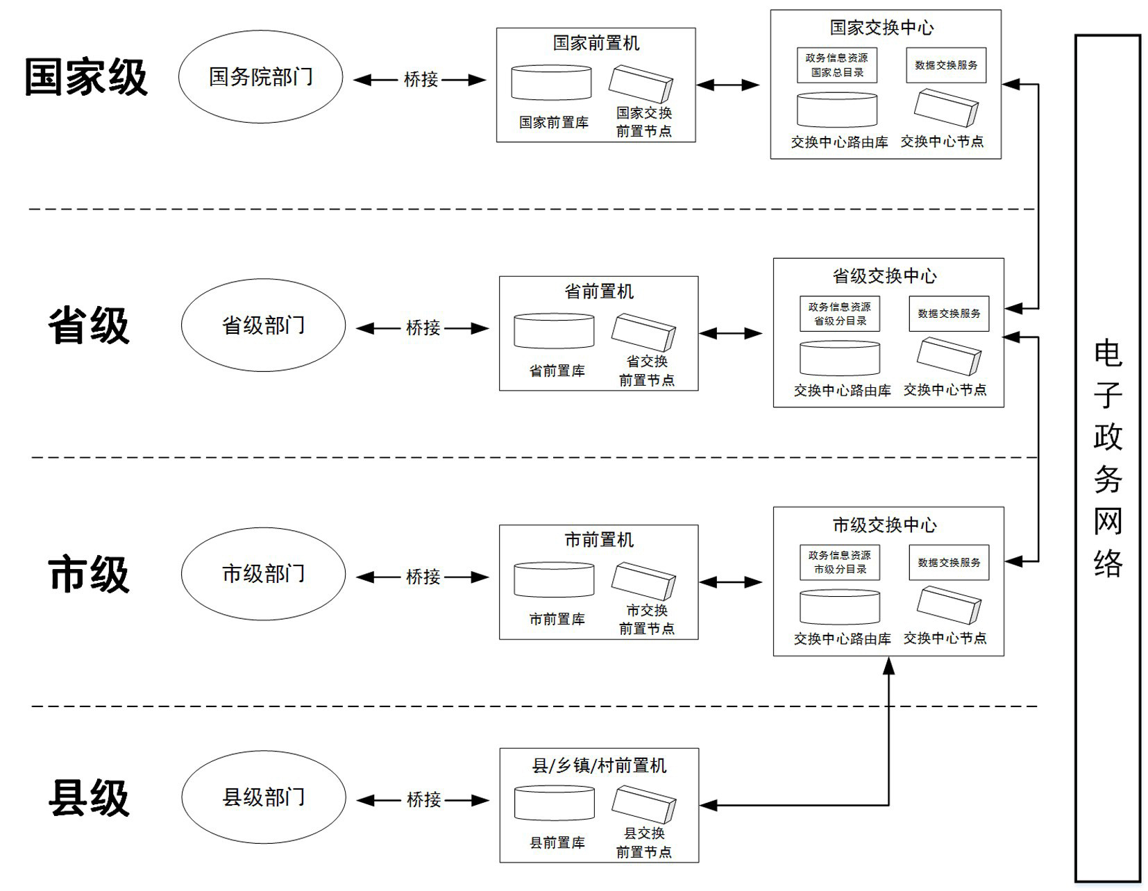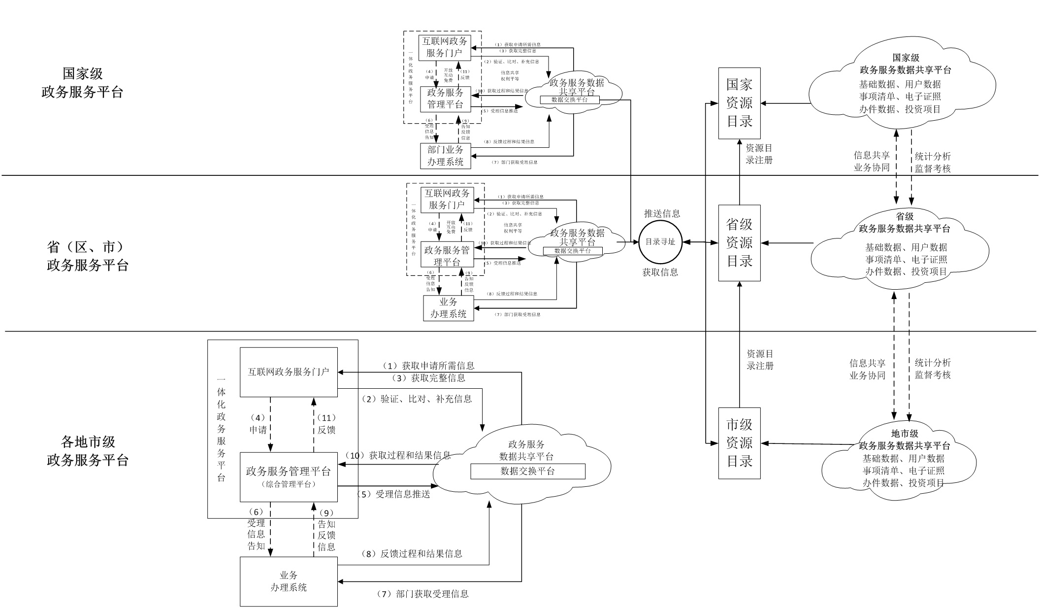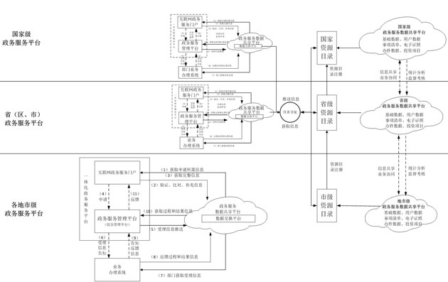 (1)国家级平台 国家级平台包括国家天天看高清影视在线官网平台和国务院部门天天看高清影视在线官网平台。国家天天看高清影视在线官网平台依托国家电子政务外网建设,主要实现各地区各部门天天看高清影视在线官网汇聚、跨地区跨部门数据交换、跨地区统一认证、共性基础服务支撑。汇集各地区、各部门天天看高清影视在线官网资源,形成统一事项目录库、证照目录库,实现人口、法人、地理空间信息、社会信用等基础信息资源库和业务信息库共享利用,发挥天天看高清影视在线官网访问的“公共入口”,地方部门数据交换的“公共通道”,身份认证、证照互认、安全保障等“公用支撑”作用。充分利用国家数据共享交换平台,做好与国家投资项目在线审批监管平台、国家公共资源交易平台、全国信用信息共享平台、国家企业信用信息公示系统等平台的衔接与整合。 国务院部门天天看高清影视在线官网平台(业务办理系统),实现部门相关天天看高清影视在线官网的办理,并与国家天天看高清影视在线官网平台实现对接和办理结果汇聚。 (2)省级平台 省级平台充分利用现有电子政务网络资源建设(原则上依托国家电子政务外网),提供省级部门天天看高清影视在线官网事项受理、办理和反馈。建立省(区、市)天天看高清影视在线官网数据共享平台,依托统一信息资源目录,通过与国家级平台和地市级平台的数据交换,实现自然人、法人基础信息共享、用户认证信息交互、证照信息共享、办件信息交换、统计分析和监督考核。 (3)地市级平台 地市级平台充分利用各地区统一电子政务网络建设(原则上依托国家电子政务外网),提供地市级、县级、乡级天天看高清影视在线官网事项受理、办理和反馈,有条件的地区可将代办点延伸至村级。依托地市(州)天天看高清影视在线官网数据共享平台,实现与国家级平台、省级平台的数据交换,提供地市级范围内基础数据共享共用,实现地市级平台与本级部门纵向系统的衔接与整合。 国家天天看高清影视在线官网平台与中央政府门户网站(及其微博微信、客户端)实现数据对接和前端整合;各省(区、市)、国务院部门天天看高清影视在线官网平台做好与本地区本部门政府门户网站及客户端的天天看高清影视在线官网资源和数据对接;同时,各地区各部门天天看高清影视在线官网平台与国家天天看高清影视在线官网平台和中央政府门户网站(及其微博微信、客户端)实现数据对接和前端整合,形成全国一体化网上天天看高清影视在线官网体系;适应移动互联网趋势,做好网上天天看高清影视在线官网平台在手机端的效果展示优化及手机适配,提高百姓用手机登录天天看高清影视在线官网平台及政府门户网站的使用舒适度。 2.平台系统组成 “互联网+天天看高清影视在线官网”平台主要由互联网天天看高清影视在线官网门户、天天看高清影视在线官网管理平台、业务办理系统和天天看高清影视在线官网数据共享平台四部分构成。平台各组成部分之间需实现数据互联互通,各组成部分之间的业务流、信息流如图3—2所示: