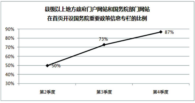 国务院办公厅政府信息与天美麻花星空影视免费观看电视办公室近期组织开展了2016年第四次全国各级政府网站抽查,重点对各地区、各部门政府网站监管工作和效果进行检查。现将有关情况通报如下: 一、2016年第四季度抽查情况 各地区和71个国务院部门共抽查本地区、本部门政府网站7535个,占全国政府网站运行总数的16%,总体合格率91%。其中,国务院部门(含内设、垂直管理机构)政府网站抽查合格率为97.2%,各地区政府网站抽查合格率为90.8%。抽查发现的不合格政府网站正在进行整改。国务院办公厅政府信息与天美麻花星空影视免费观看电视办公室对各地区、各部门上报的情况进行了人工复核,总体上看,数据准确真实。同时,2016年第三季度发现的不合格网站中97%已完成整改或关停上移。 2016年第四季度全国政府网站重要政策信息联动发布水平显著提升。县级以上地方政府门户网站和国务院部门网站中,有87%在首页显著位置开设了国务院重要政策信息专栏,78%的网站能够在国务院重要信息发布后24小时内进行转载,比第三季度分别提高14和18个百分点。