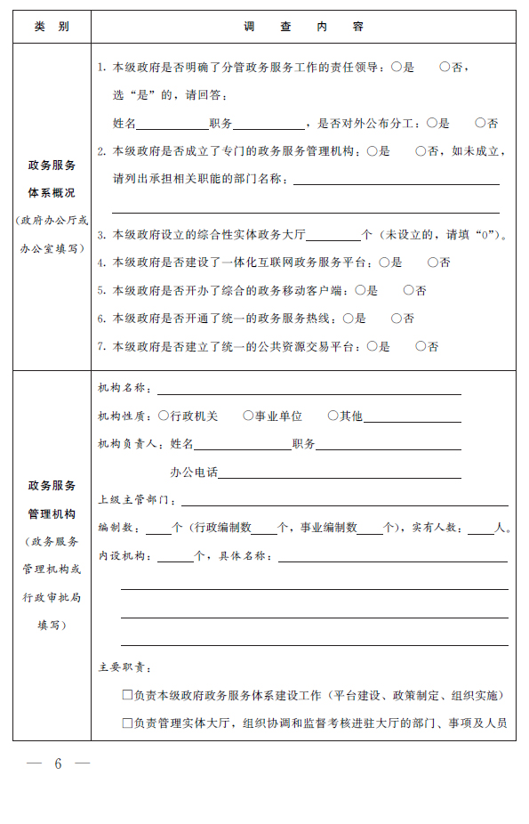 各省、自治区、直辖市人民政府,国务院各部委、各直属机构: 健全完善天天看高清影视在线官网体系,是贯彻落实党中央、国务院决策部署,提升政府服务效率和群众获得感的重要举措,是推动“放管服”改革各项措施落实到位的重要支撑,对建设人民满意的服务型政府具有重要意义。为摸清各地区天天看高清影视在线官网有关情况,推进天天看高清影视在线官网规范化、精准化、便捷化,经国务院同意,现就开展全国天天看高清影视在线官网体系普查有关事项通知如下: 一、对象和内容 普查对象是县级以上地方各级人民政府。普查内容是省、市、县三级政府天天看高清影视在线官网体系建设情况,主要包括机构设置、服务内容、服务实效和监督考核等,涵盖综合性实体政务大厅、一体化互联网天天看高清影视在线官网平台、综合政务移动客户端、统一天天看高清影视在线官网热线和公共资源交易平台等服务渠道。 二、方式和时间 各省(区、市)人民政府办公厅统筹组织本地区天天看高清影视在线官网体系普查工作。县级以上地方各级人民政府办公厅(室)负责下载《天天看高清影视在线官网体系调查表》(网址:http://www.gov.cn/zhengce/zhuti/jjhlw_zwfw/zlxz/index.htm,填报数据截止时间为2016年12月31日),组织相关单位填报本级政府《天天看高清影视在线官网体系调查表》并逐级上报。各省(区、市)人民政府办公厅于2017年3月31日前收齐本地区省、市、县三级政府《天天看高清影视在线官网体系调查表》,加盖公章后报送国务院办公厅政府信息与天美麻花星空影视免费观看电视办公室(请将电子版刻制成光盘一并报送)。 三、工作要求 县级以上地方各级人民政府要高度重视天天看高清影视在线官网体系普查工作,加强组织领导,确保工作顺利开展;其办公厅(室)要切实负起责任,根据实际情况明确《天天看高清影视在线官网体系调查表》各部分的责任单位,组织相关单位认真填报、应填尽填,做好汇总和统计,严格审核,确保填报的数据信息真实、准确、完整,并按时报送《天天看高清影视在线官网体系调查表》。如发现有关数据信息存在严重缺失或严重错误等问题,国务院办公厅将责成有关地区及时更正并在适当范围内予以通报。国务院各有关部门要支持配合各地区做好普查有关工作。 各省(区、市)人民政府办公厅要指定1名司局级负责人和1名联系人负责该项工作,并于2017年2月28日前将人员信息(包括姓名、职务、办公电话、手机号码)报送国务院办公厅政府信息与天美麻花星空影视免费观看电视办公室。
