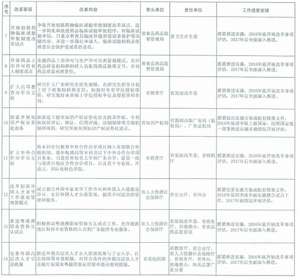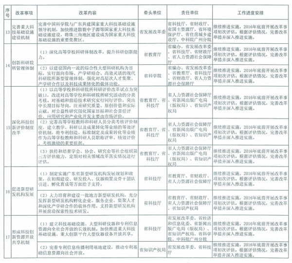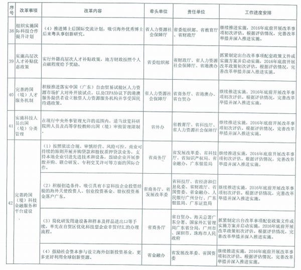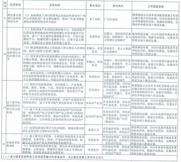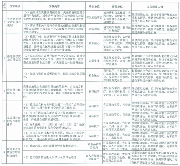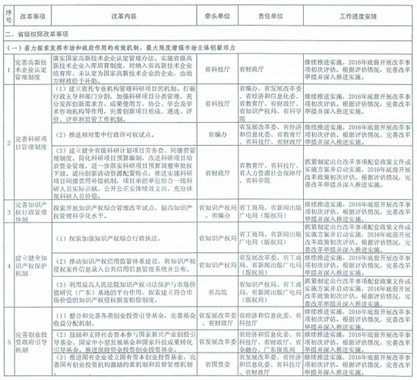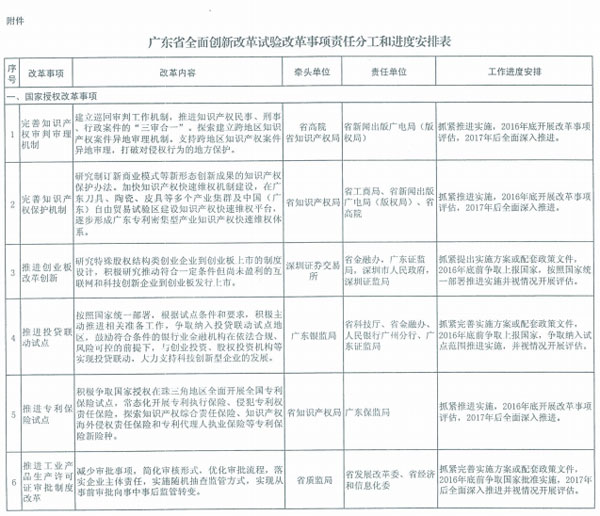 附件:广东省全面创新改革试验改革事项责任分工和进度安排表