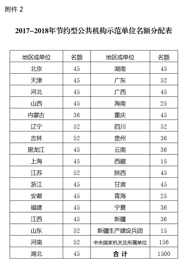 2. 2017-2018年节约型公共机构示范单位名额分配表