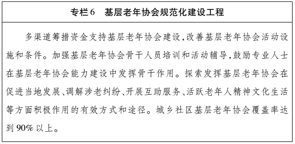 27.规范发展老年人组织。坚持扶持发展和规范管理并重,加强老年社会组织的培育扶持和登记管理。积极发挥老年人组织的作用,促进老年人实现自我管理、自我教育、自我服务。采取政府购买服务等措施加大对基层老年社会组织的支持力度。支持老年人组织参加或承办政府有关人才培养、项目开发、课题研究、咨询服务等活动。到“十三五”末期,全省城镇社区和90%以上的农村行政村成立基层老年协会。(省民政厅、省老龄办牵头,省财政厅参加)