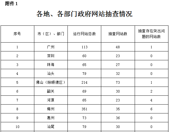 附件:1.各地、各部门政府网站抽查情况