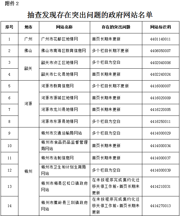 2.抽查发现存在突出问题的政府网站名单