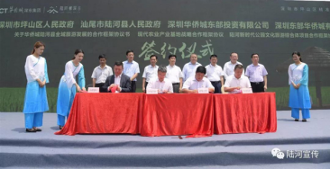 深圳坪山区政府、陆河县政府与东部华侨城签订的《产业化扶贫(现代农业产业基地)战略合作框架协议》将通过“创新型产业化扶贫”模式,在陆河县嵌入花圃基地、苗木基地、蔬菜基地以及牛肉加工基地四大产业基地,把陆河县的发展推到产业化发展道路上,力争打造成绿色产业示范基地,并形成特色产业园区。