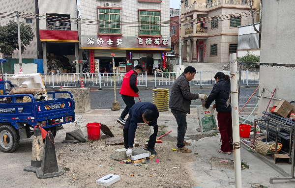 攻坚行动主要围绕两大重点展开:一是入口通道提质,二是“七个一”项目建设。在入口通道整治方面,针对国道G235沿线北山、横陇、麻地三个路段,行动小组分工协作,有序推进路面砂石及积存垃圾清理、违规搭建物拆除、交通秩序规范等工作。同时,进一步压实沿线商户“门前三包”责任制,引导商户共同维护入口通道及圩镇主干道的整洁有序,营造畅通、安全、美观的通行环境。